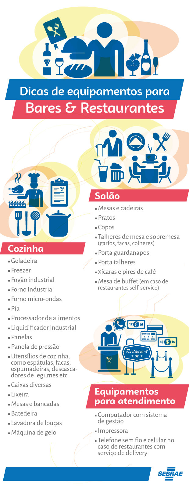 O Sebrae também dá dicas sobre máquinas e equipamentos para restaurantes.