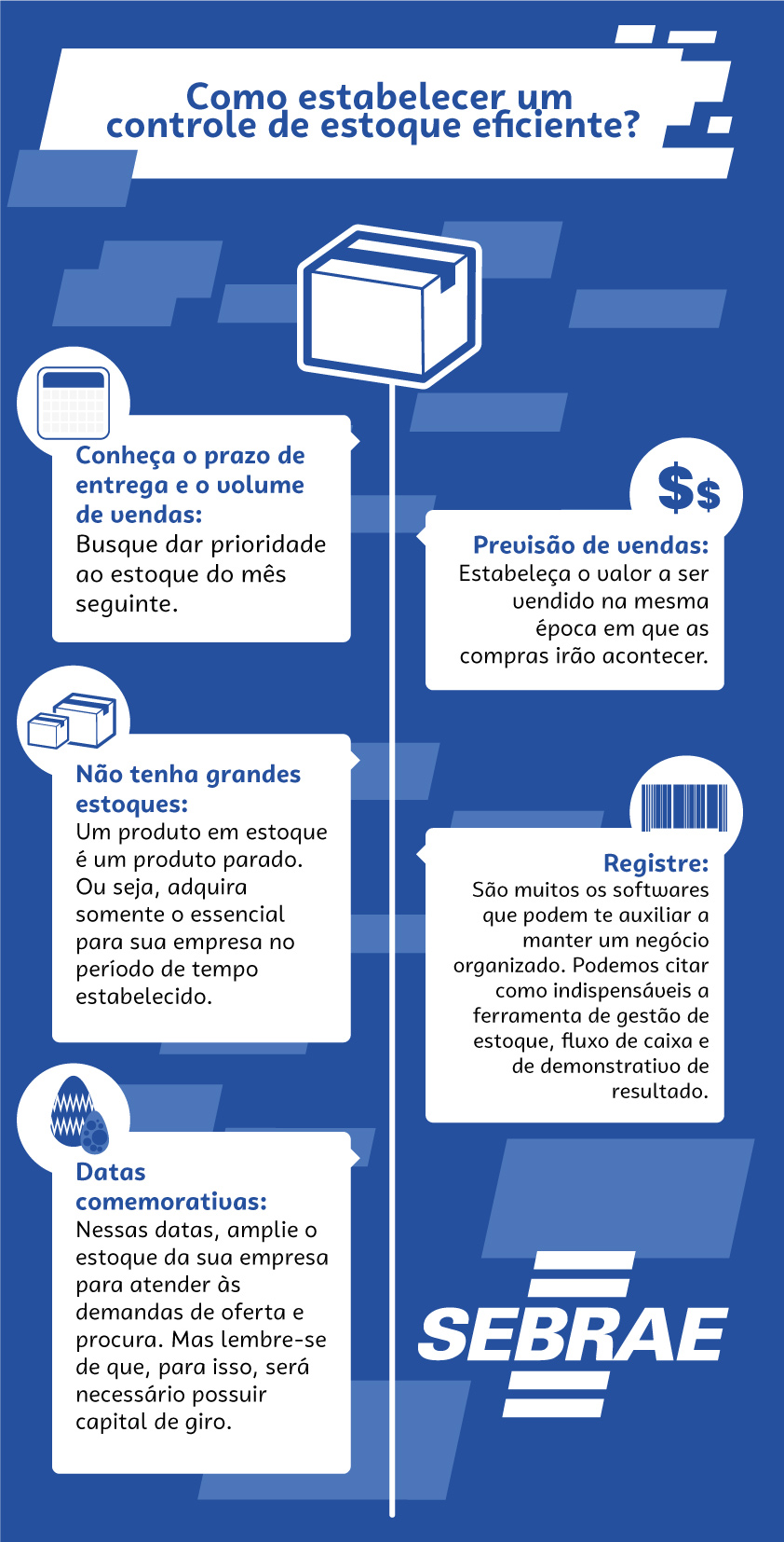 Um produto em estoque é um produto parado. Ou seja, adquira somente o essencial para sua empresa no período de tempo estabelecido.
