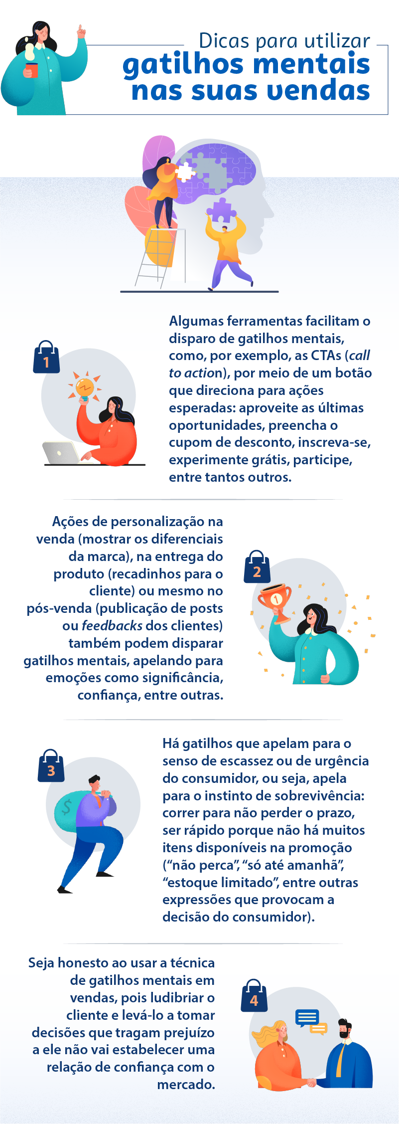Gatilhos mentais não devem ser usados para ludibriar o cliente, mas, sim, para ajudá-lo na correta tomada de decisão. Assim, além do aumento nas vendas, ainda há uma melhora no relacionamento com o consumidor. Não é exatamente isso o que uma empresa busca?