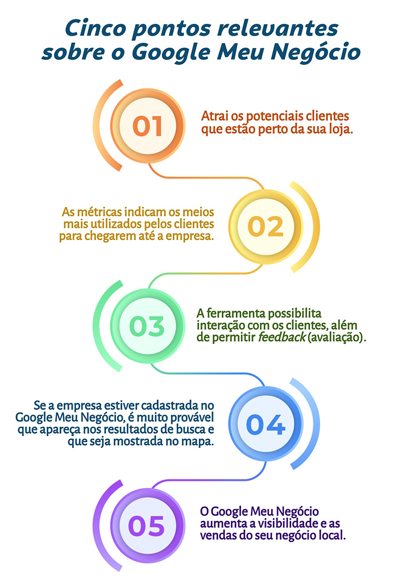 A criação do perfil na ferramenta permite que potenciais clientes possam encontrar o seu negócio. Além disso, proporciona maior credibilidade porque é possível que você ou seus clientes insiram fotos do local, dos produtos e dos serviços. No perfil, também ficam registradas as avaliações que os clientes fazem da empresa. Outra possibilidade é interagir com quem deixa uma avaliação da empresa, postar atualizações, além de publicar ofertas e promoções.