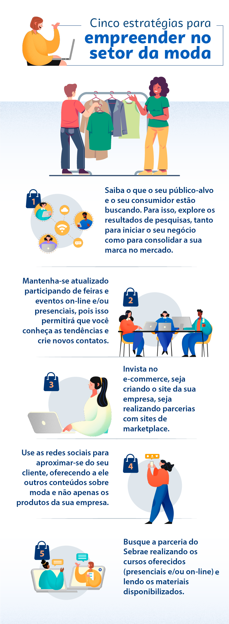 Então, agora que você já conhece algumas tendências e estratégias do mercado da moda, que tal explorar o assunto com a ajuda do Sebrae? A nossa parceria vai fazer você crescer! Pode contar com isso!