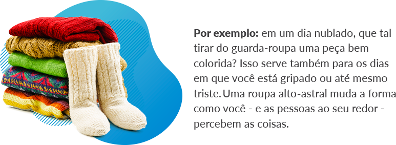 A roupa traduz muito o que sentimos, pois nos vestimos de acordo com o que acreditamos. Podemos até brincar com as sensações ao usar peças, acessórios e, claro, cores.