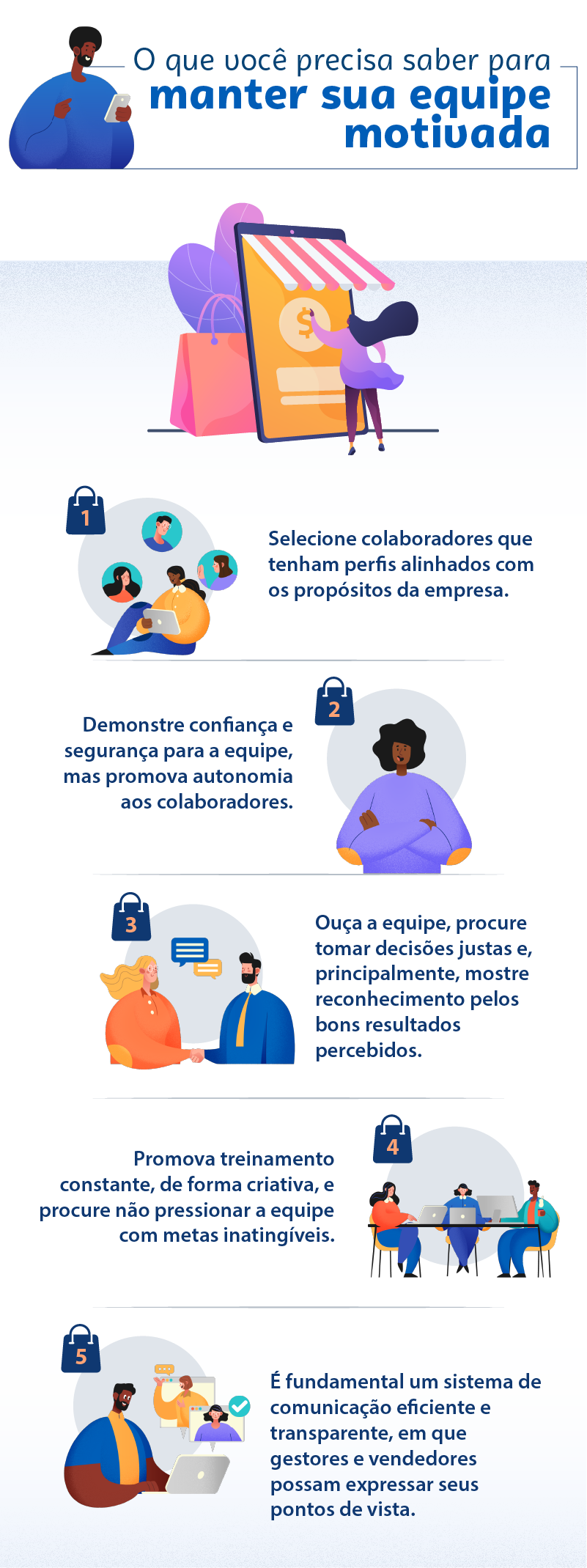 Ter motivação diária não é uma tarefa fácil e, quando se trata de vendas, especialmente em um setor competitivo como o da moda, torna-se ainda mais difícil por conta da rotina corrida e da pressão por bons resultados. Por isso, compreender o processo de motivação de uma equipe de vendas e investir em capacitação vai contribuir com a saúde mental dos colaboradores e com a boa convivência do time, o que, consequentemente, trará vantagens e lucros para a empresa.