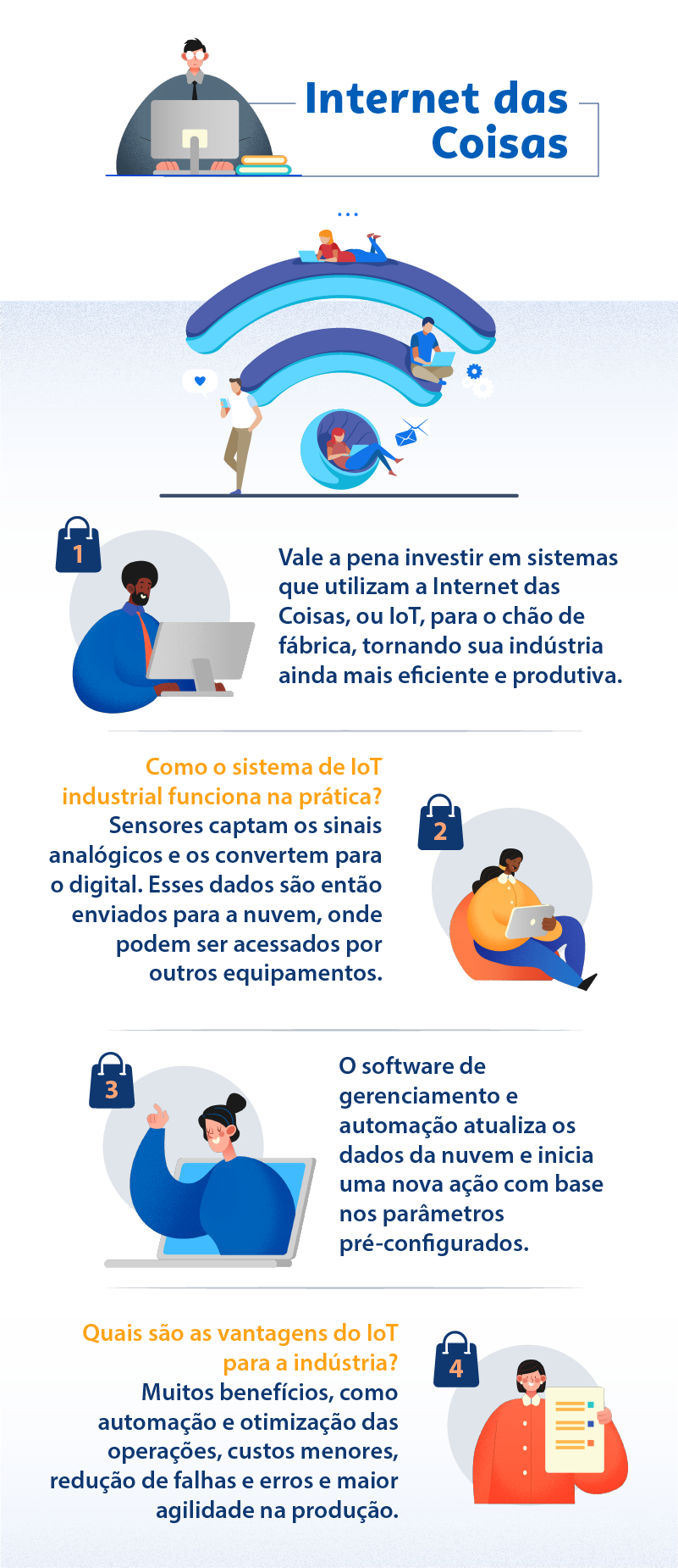 As melhorias vêm com a eliminação de desperdícios, no uso de sensores, na otimização de processos e nas melhores decisões baseadas na análise de dados que podem ser obtidos.