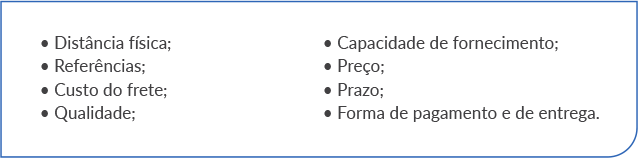 Sabendo de tudo isso, é bom entender o que deve ser levado em conta na hora da escolha pelos fornecedores ideais para seu negócio:
