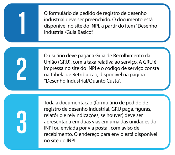 Para obter o registro, o objeto ou padrão não pode se tornar público até a data da entrada do pedido no INPI, nem pode ser igual ou semelhante a outros já existentes. Também é importante saber que o registro de desenho industrial não protege funcionalidades, melhorias, formas de fabricação e outros detalhes além da forma externa do objeto. Essas inovações funcionais podem ser protegidas por patentes de invenção ou de modelo de utilidade.