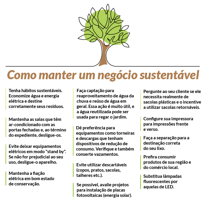 Ao reduzir o consumo de recursos naturais, os empreendimentos também economizam recursos financeiros. Atitudes sustentáveis praticadas como princípios em empresas de todas as atividades econômicas, envolvendo todos os colaboradores, promovem o estabelecimento de uma nova cultura de produção e prestação de serviços responsáveis. Todos os dias surgem novas oportunidades em todas as áreas da empresa, basta que desenvolvamos um novo olhar.