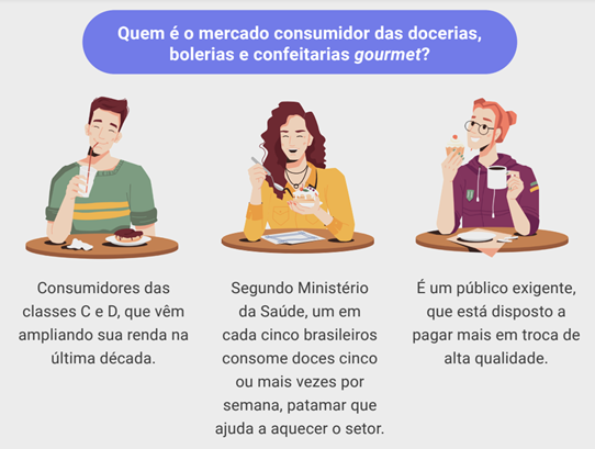 O Sebrae preparou um relatório com informações valiosas para o seu negócio gourmet. Faça o download gratuito na íntegra: Docerias, bolerias e confeitarias gourmet, saiba como investir em um dos setores que mais se destaca no mercado.