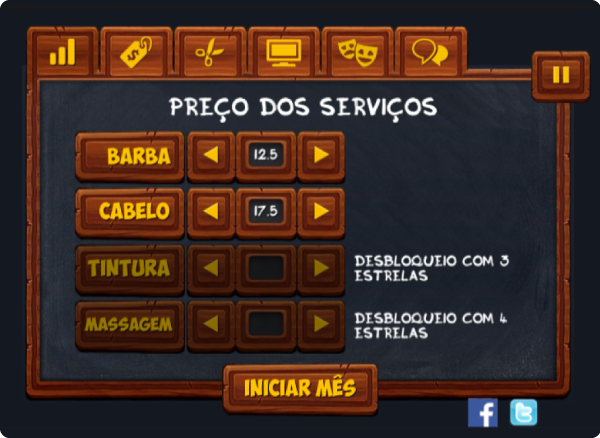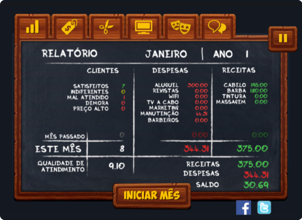 Todo mês você pode editar o valor do seu corte, contratar novos funcionários e comprar entretenimento para seus clientes, como revistas, mesa de sinuca, wifi.