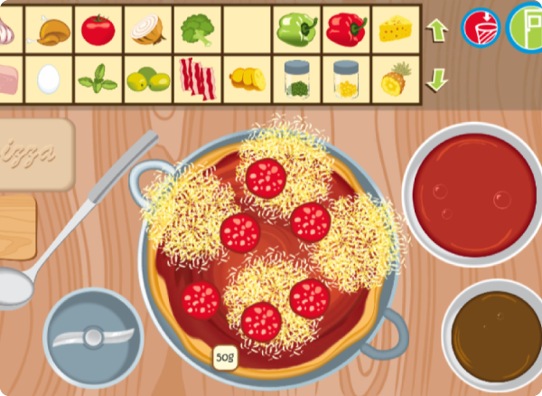 Aproveite os diversos ingredientes e faça as pizzas mais saborosas da região. Utilize os utensílios disponíveis para fatiar e ralar ingredientes e criar diferentes combinações de sabores.