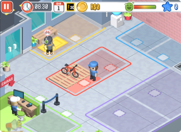 Utilize o botão esquerdo do mouse para clicar nos clientes e levá-los aos setores desejados de sua loja. Pause o jogo quando achar necessário e não se esqueça de salvar sua evolução.