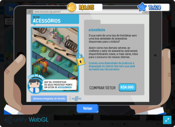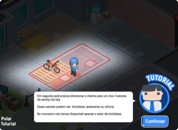 Recepcione os clientes e os direcione para o setor desejado. Esses setores podem ser: bicicletas, acessórios ou oficina, porém no início somente as bicicletas estão disponíveis.