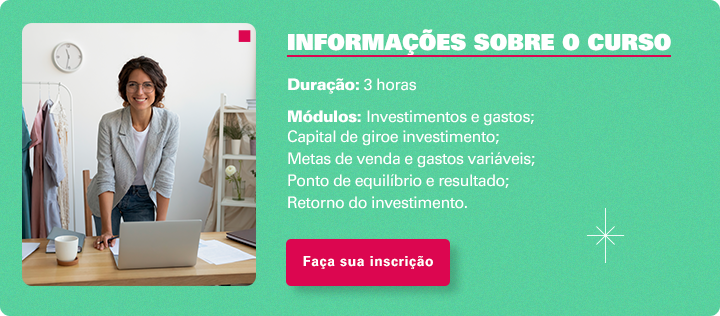 Neste curso, você passará por um aprendizado que irá ajudá-lo a chegar ao tão almejado ponto de equilíbrio e finalmente conseguirá definir um valor justo e competitivo para seu produto/serviço.