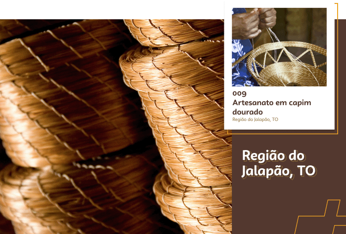 A partir da década de 1990, as peças de capim dourado do Jalapão se popularizaram, ganhando o Brasil e o mundo. Hoje, o artesanato tornou-se a principal fonte de renda das comunidades que vivem na região, por meio do uso sustentável e ecológico do cerrado. Ele é uma herança cultural que gera empregos, recursos e desenvolvimento, além de fortalecer o turismo.