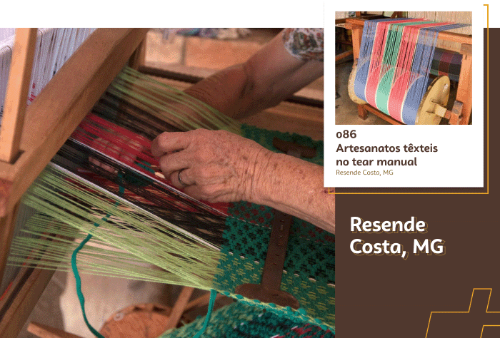 O artesanato em tear manual pode ser encontrado por meio da Associação das Empresas do Turismo e do Artesanato de Resende Costa – ASSETURC.