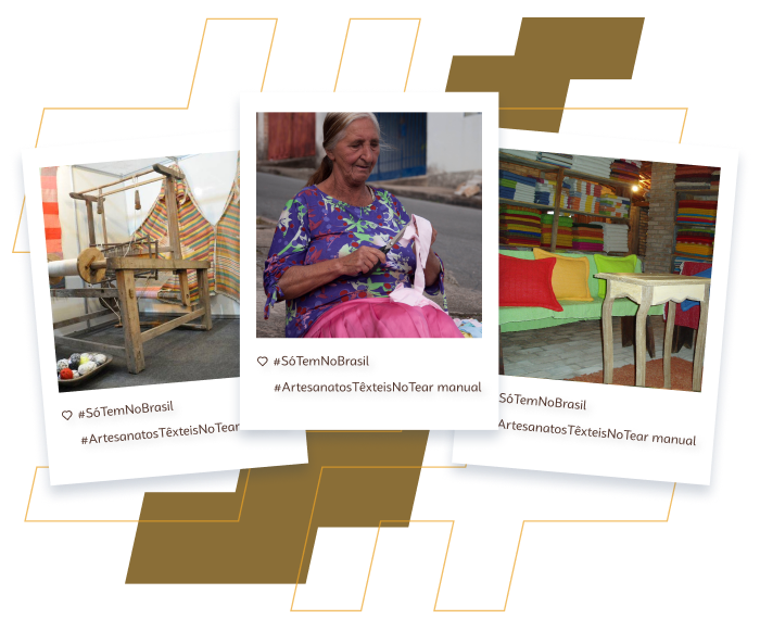 Produto: Artesanatos têxteis produzidos por tear manual e produção manual