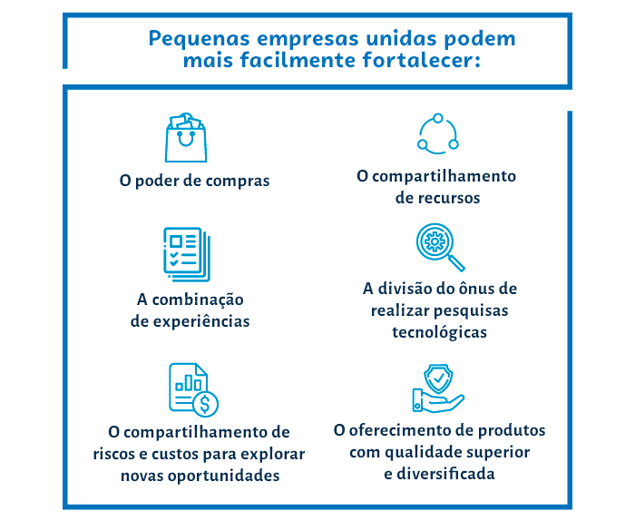 A cooperativa pode ser dirigida e controlada pelos próprios associados, que participam do planejamento e têm vantagens na obtenção de crédito, com menor custo operacional em relação aos bancos. Identificação do público-alvo e parcerias, avaliação de viabilidade econômico-financeira e filiação à cooperativa central são algumas fases do processo. Clique aqui e saiba como constituir uma cooperativa.