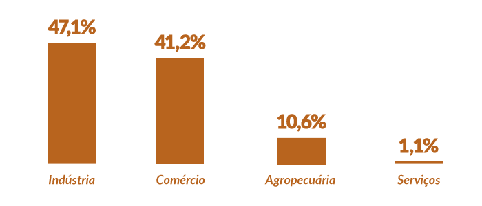 A indústria de alimentos representa uma importante fatia das empresas exportadoras e é o segmento com maior valor médio exportado, seguido das empresas de vestuário e acessórios.