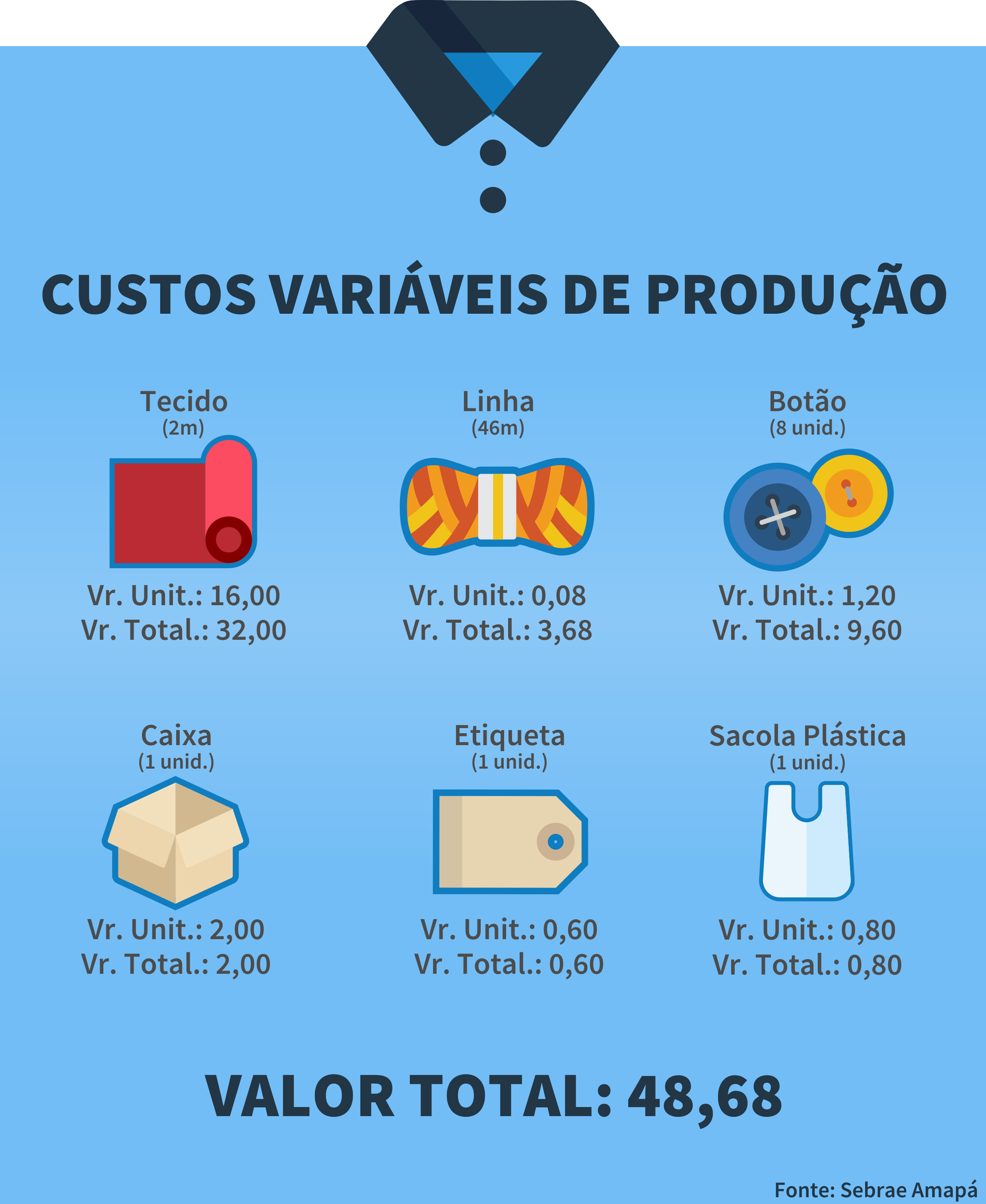 Para explicar na prática sobre o cálculo para chegar no valor ideal, vamos usar como exemplo que a empresa está fabricando uma camisa.
