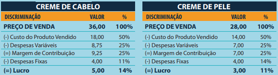 Vejamos estes cálculos na prática, por exemplo, aplicados a dois produtos vendidos em um salão de beleza: