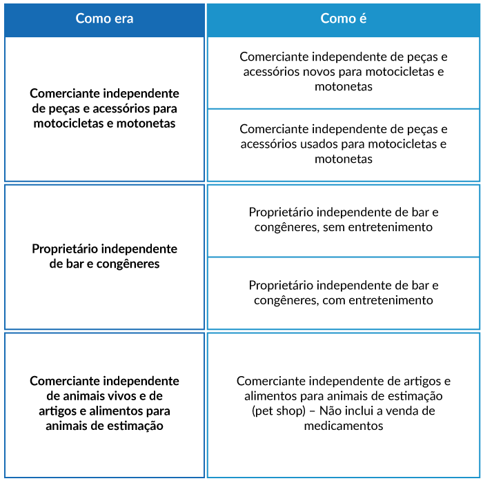 Você, que é MEI, já está sabendo das alterações nas atividades que pode exercer? A Receita Federal alterou a Classificação Nacional de Atividades Econômicas (CNAE) e extinguiu, para 2019, 26 ocupações permitidas aos microempreendedores individuais e fez alteração em outras cinco. Confira a seguir o que mudou Algumas atividades apenas tiveram a nomenclatura diferenciada: um exemplo é o proprietário de bar, como você pode ver abaixo. As atividades a seguir foram excluídas, e os empreendedores desses segmentos devem migrar para o regime de microempresa (ME) agora em 2019, até o prazo de 31 de janeiro. Confira abaixo se sua atividade sofreu mudanças: Abatedor de aves independente Alinhador de pneus independente Aplicador agrícola independente Balanceador de pneus independente Coletor de resíduos perigosos independente Comerciante de extintores de incêndio independente Comerciante de fogos de artifício independente Comerciante de gás liquefeito de petróleo (GLP) independente Comerciante de medicamentos veterinários independente Comerciante de produtos farmacêuticos homeopáticos independente Comerciante de produtos farmacêuticos, sem manipulação de fórmulas independente Confeccionador de fraldas descartáveis independente Coveiro independente Dedetizador independente Fabricante de absorventes higiênicos independente Fabricante de águas naturais independente Fabricante de desinfestantes independente Fabricante de produtos de perfumaria e de higiene pessoal independente Fabricante de produtos de limpeza independente Fabricante de sabões e detergentes sintéticos independente Operador de marketing direto independente Pirotécnico independente Produtor de pedras para construção não associada à extração independente Removedor e exumador de cadáver independente Restaurador de prédios históricos independente Sepultador independente O MEI que atua nas atividades extintas precisa solicitar seu desenquadramento no Portal do Simples Nacional, por meio do serviço Desenquadramento do Simei (clique aqui). Na prática isso significa que ele passará a ser uma microempresa ou uma empresa de pequeno porte, e deve ficar atento para: Recolher os tributos pela regra do Simples Nacional como microempresa ou empresa de pequeno porte. Utilizar o aplicativo PGDAS, disponível no Portal do Simples Nacional, para cálculo do valor e geração da guia de recolhimento. No entanto, se a atividade foi apenas alterada, mas continua existindo, é preciso somente atualizar a atividade econômica nos dados cadastrais. Isso pode ser feito no Portal do Empreendedor, na opção "alterar dados" (clique aqui). Para o MEI que for fazer o desenquadramento, é necessário realizar a solicitação até 31 de janeiro de 2019, pois assim a mudança ocorre já neste ano-calendário. Contribuição mensal Com o reajuste do salário mínimo, o valor da contribuição mensal do MEI também mudou. Em 2019, a taxa mensal obrigatória é de R$ 49,90 ou R$ 50,40 (comércio ou indústria, dependendo da necessidade de o MEI pagar ou não a taxa de ICMS), R$ 54,90 (prestação de serviços) ou R$ 55,90 (comércio e serviços ou indústria e serviços juntos). Para pagar essa contribuição, basta ir ao Portal do Empreendedor para gerar o Documento de Arrecadação do Simples Nacional (DAS). Lá, você pode escolher entre as seguintes modalidades de pagamento: débito automático, online ou boleto. Clique aqui e veja mais. Declaração anual Outra mudança é em relação à declaração anual de faturamento (DASN-Simei). Agora, o MEI precisa informar a receita auferida com prestação de serviços – antes, era só a receita relacionada às atividades de comércio. Saiba tudo o que precisa fazer para realizar a declaração anual e-Social O módulo eSocial WEB MEI é um sistema para a inserção de dados do eSocial. Ele foi criado principalmente para facilitar aos MEIs com funcionário o cumprimento das obrigações legais, permitindo a consulta e a edição de dados, alterações, retificações e exclusões de eventos relativos aos empregados. Se você tem um funcionário, prepare-se para informar os dados ao sistema. O calendário foi definido pelo Comitê Gestor do eSocial. Confira abaixo as etapas. A partir de 10/1/2019: deverão ser informados os dados do próprio MEI. A partir de 10/4/2019: serão informados os dados do empregado do MEI, além dos eventos trabalhistas que ocorrerem a partir daí, como férias, afastamento por doença, licença-maternidade ou mesmo sua demissão. A partir de 10/7/2019: serão informadas as folhas de pagamento. Somente a partir dessa fase o MEI deverá informar a remuneração do seu empregado, e o sistema o auxiliará a efetuar os cálculos relativos à contribuição previdenciária, FGTS e demais encargos a serem recolhidos. A partir de 1/10/2019: Substituição da Guia de Recolhimento do FGTS e de Informações à Previdência Social (GFIP). Se quiser saber mais sobre o cadastramento do MEI no e-Social, veja aqui as dúvidas mais frequentes. Se ainda tiver dificuldade, entre em contato com a unidade mais próxima do Sebrae.