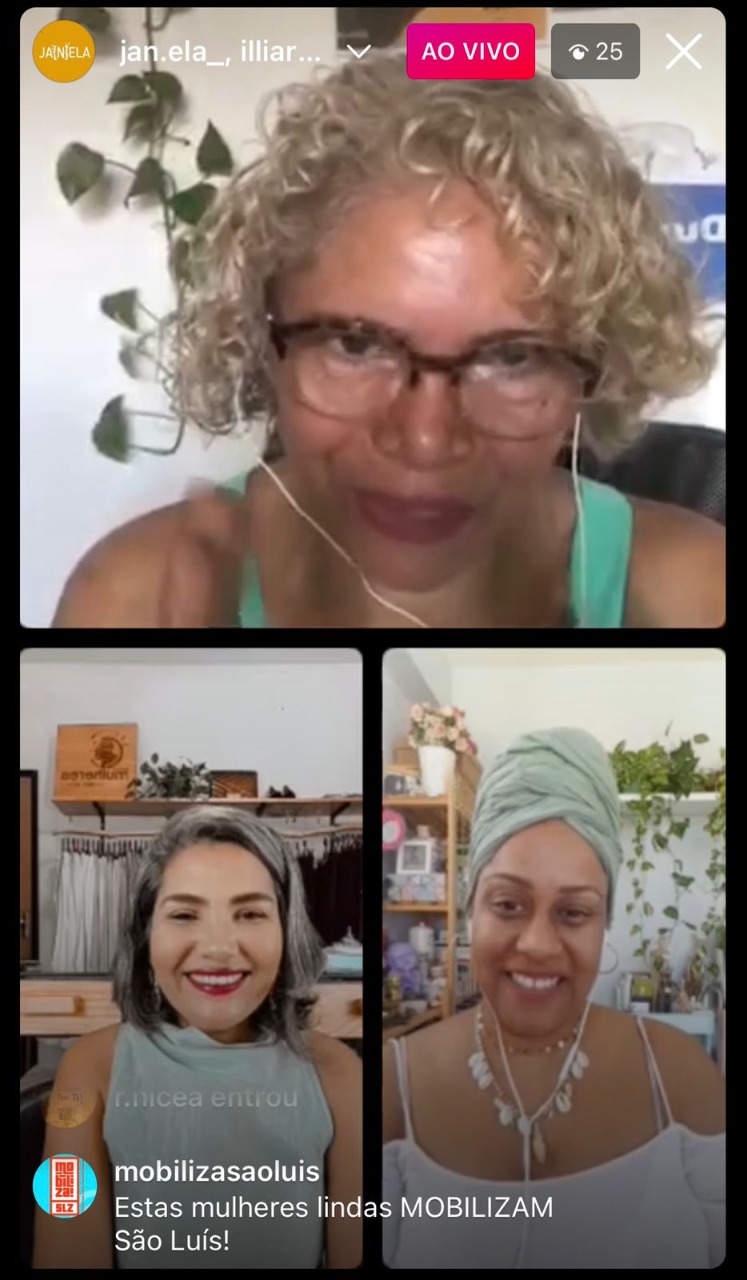 A live realizada na tarde deste domingo de sol para lançamento do projeto JA[N]ELA fez parte da programação do Mobiliza SLZ. Realizada no Instagram do projeto, a live reuniu 3 mulheres incríveis: Nádia Nicácio, Jacirene França e Íldima Lima. Elas conversaram sobre suas histórias, sobre arte, moda consciente e lugar de fala.
