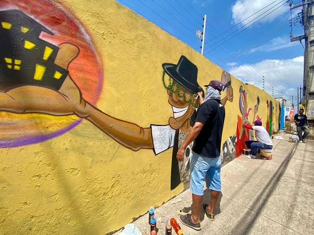 A Equatorial Maranhão, por meio do coletivo "Rua e Raiz", iniciou hoje a intervenção artística de grafitagem no muro de sua Subestação, localizada no Cohafuma. O projeto "Arte e Energia" utiliza o grafite para se comunicar com a sociedade, na valorização da arte urbana e do turismo, assim como à segurança e aos cuidados com a energia. Em 2021, o grupo já finalizou painéis em seis cidades maranhenses. No Mobiliza SLZ, o grupo de artistas trará mais beleza e alegria para a cidade, numa homenagem aos seus 409 anos.