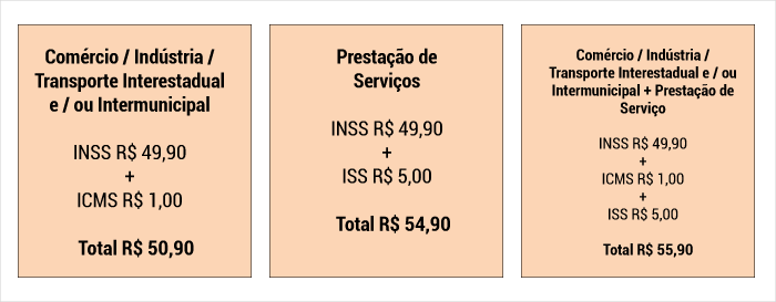 - R$ 1,00 ICMS (no caso de comércio, indústria ou serviços de transporte)
