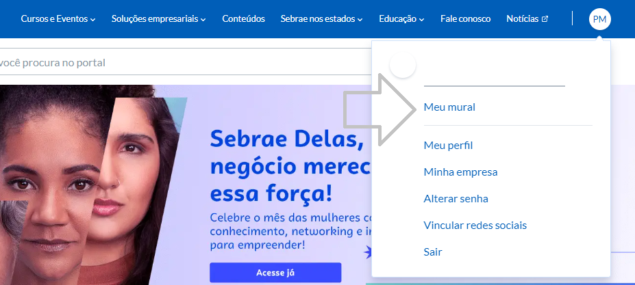 2 - Clique novamente na parte superior direita e depois clique em “Meu mural”.