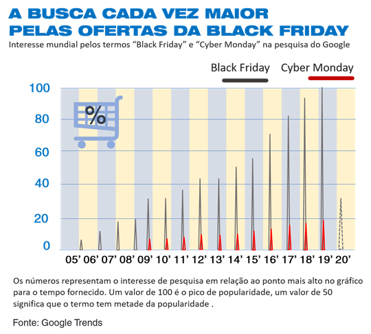 Dados do Google Trends mostram os clientes online começam suas buscas para a data na quarta e decresce no domingo. Segundo a pesquisa essa é uma tendência de muitos países, inclusive no Brasil.