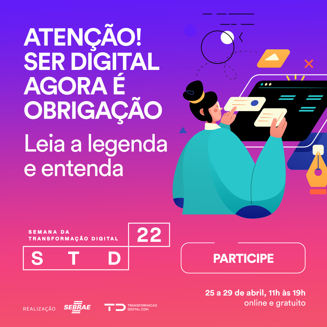 Pensando em empoderar micro e pequenos negócios a respeito da cultura de inovação, direcionando os empreendedores para uma gestão de negócios que une ativos digitais e presenciais, o Sebrae, em parceria com a TD, promove a 5ª edição da Semana de Transformação Digital para Micro e Pequenas Empresas. O evento, online e gratuito, será realizado entre os dias 25 e 29 de abril. Interessados podem se inscrever pelo site: http://www.semanatd.com.